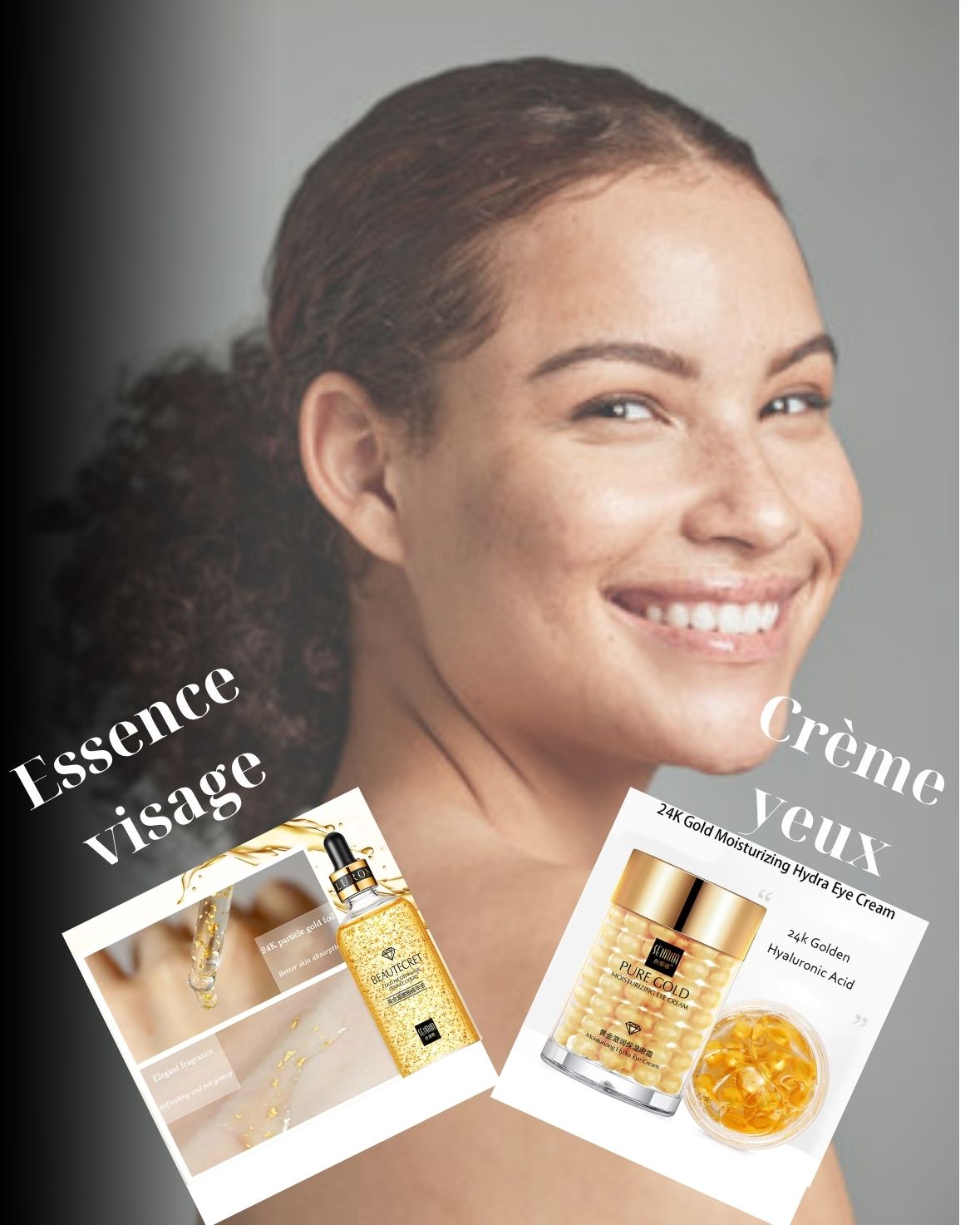 Cet ensemble offre une action complète : il hydrate intensément, lutte contre les signes visibles du vieillissement, illumine le teint et redonne fermeté et éclat à la peau du visage et du contour des yeux grâce à la synergie de l'or 24K et de la niacinamide.